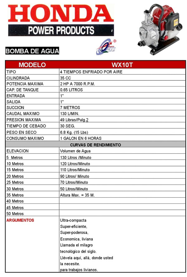 Bomba de agua Modelo WX10T